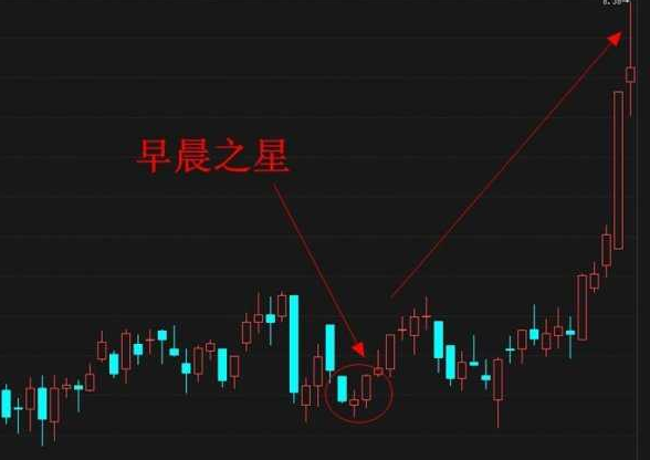 1 早晨之星的概念。 所谓早晨之星,是一根阴线、一根带长下影线K线和一根阳线的组合,其位置主要出现在某只个股的底部,是一种十分明显的见底信号。 2 早晨之星的特征。