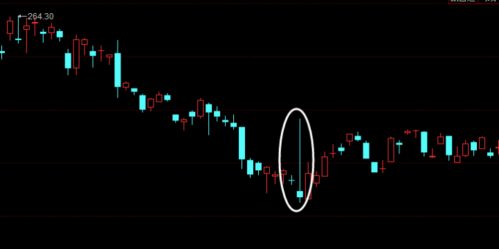 (2)倒锤线能否引起趋势反转,第二天的开盘是判断的重要准则。如果第二天的开盘高于倒锤线实体,则反转概率较大。